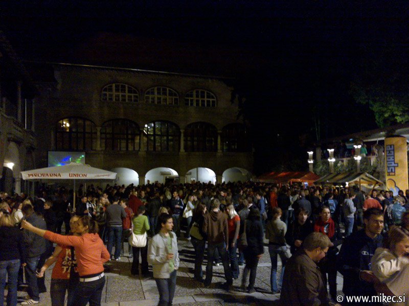 Dan se je prevesil v noč in dogajanje preselilo v Križanke, kjer so nastopili Dan D, Zoran Predin in Globoka Grla, Zlatko in optimist, Mladi Dolenjci, Mama Manka z Rock Otočec fanti ter Otium. “Nebo” je razsvetljevala ogromna disco krogla in ob Mladih Dolenjcih se je z njo zavrtel tudi precejšen del 5.000 glave množice. Ko sem malo hodil naokoli, te dobesedno na 5 metrov nekdo izmed znancev potreplja po rami in kaj hitro najdeš skupnega imenovalca. Tudi kolege, ki jih nisem videl že po par let, sem srečal ravno na Cvičkariji, kot tudi soblogerja Darjo in Miho. Cviček – connecting people. Bilo je luštno!