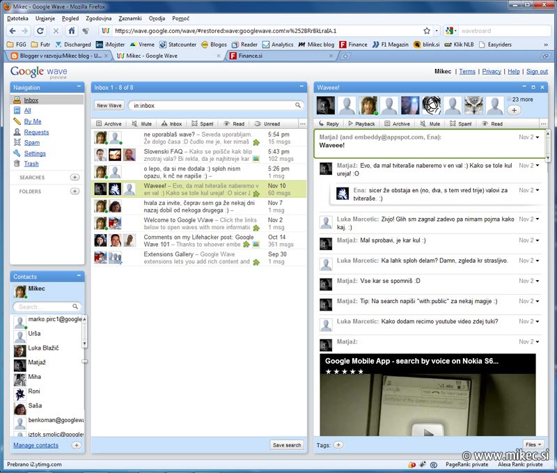 Po spletu se veliko govori o Wave-u in kjer je dim, je ponavadi tudi ogenj, tako da sem morda zaradi tega pričakoval preveč, vendar me dosedanji Wave ni niti malo navdušil. Kako bo storitev Wave napredovala pa bo pokazal čas, trenutno jo uporablja relativno malo uporabnikov in verjetno zmožnosti sploh ne pridejo do izraza.
