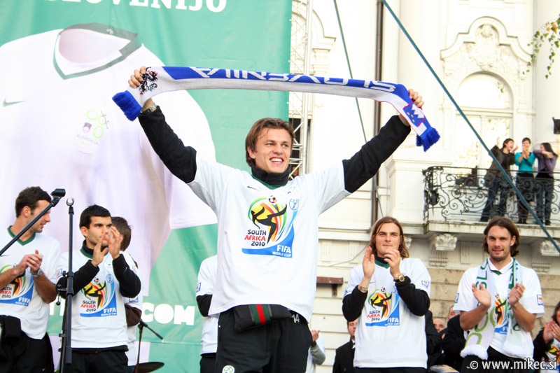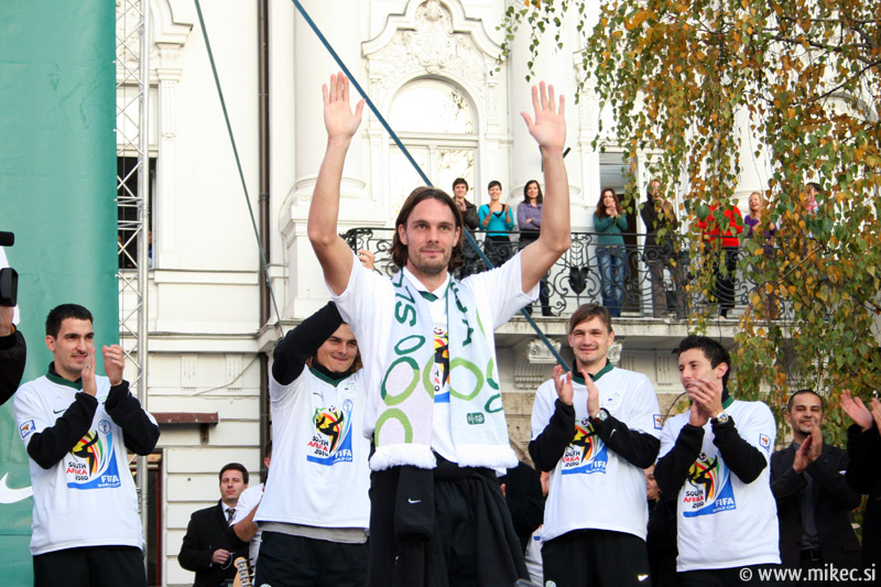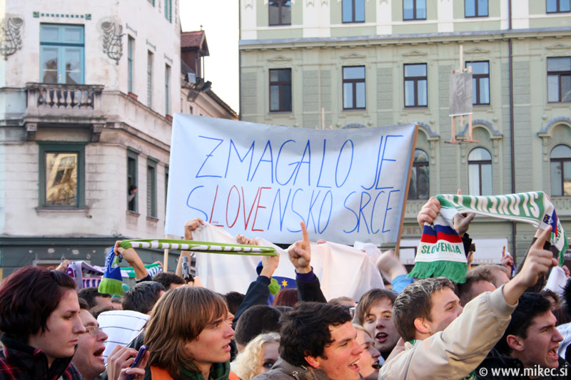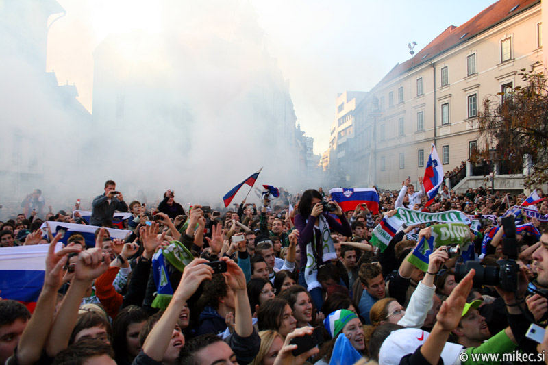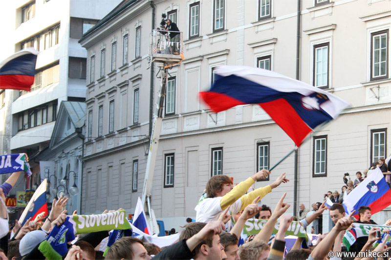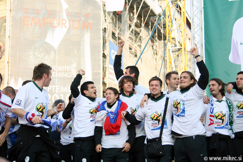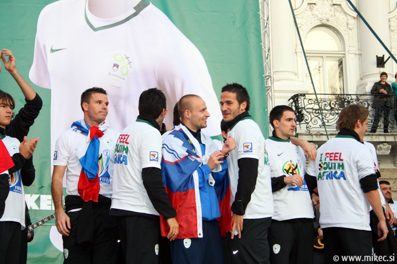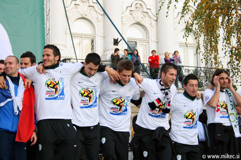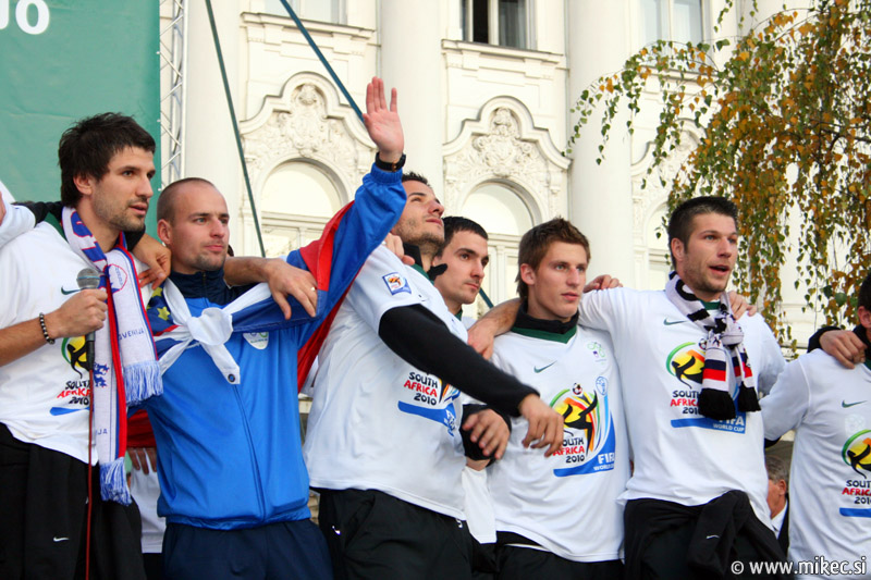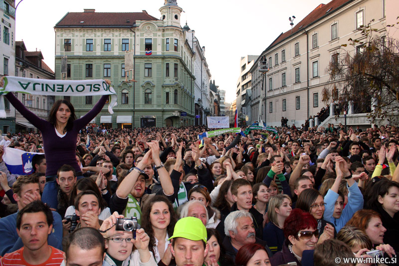 Slovenska nogometna reprezentanca je včeraj z izjemno igro premagala sicer na papirju kvalitetnejšega nasprotnika, Rusijo in se tako uvrstila na svetovno prvenstvo v Južnoafriški republiki. Od vsega začetka sem verjel sem v zmago naših, kakopač ne ob prikazani igri; imel sem le pomisleke, da so naši dali gol prehitro, kar bi se nam lahko kasneje v drugem polčasu maščevalo, a vendar so z požrtvovalno igro uspeli ohraniti domačo mrežo nedotaknjeno. Rusom so tako prilepili krepko zaušnico ter na noge spravili vso Slovenijo in verjamem, da ga ni Slovenceljna, ki ne bi pokazal vsaj malo navdušenja nad rezultatom. Danes je reprezentanco prišla na Prešernov trg v Ljubljani pozdraviti nekaj tisoč glava množica kar kaže, da je slovenski narod ponovno dobil vero v naše nogometaše in upravičeno lahko upamo, da se bo v JAR pisala nova slovenska pravljica. Nekaj današnjih fotoutrinkov.