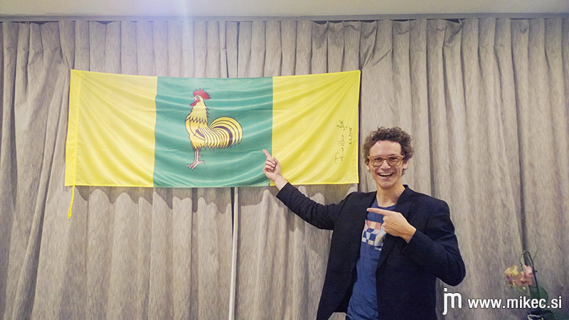 In kaj se torej skriva za samim presenečenjem? Prijateljica (najbolj poznana po intervjuju iz Vala 202), ki se je odpravila domov na obisk je vedela za moje navdušenje nad domačimi konci in mi po pravi misiji priskrbela šentjernejsko zastavo z županovim podpisom. Od klicarjenja na občino in razlaganja, da bi želela presenetiti goreče trobilo šentjernejskega okoliša na Novi Zelandiji pa vse do logističnih problemov, kako samo zastavo spraviti iz Šentjerneja v Novo mesto (Adrio Mobil) do njene mame Ivanke. Sprva naj bi se po zastavo ustavil tovornjak podjetja Podgorje, katerega proizvodnja gre večinoma za Adrio, venar pa ker le-ta ne bi mogel obračati na občinskem parkirišču, je vse skupaj organizirala Ivankina sodelavka Nataša. Sploh je ne poznam, pa je bila njena dobra volja izpeljati to zame. Vsem, ki so imeli kakorkoli prste vmes, od tajništva občine, župana pa do oseb, ki so pomagali, bili pripravljeni pomagati, hvala!